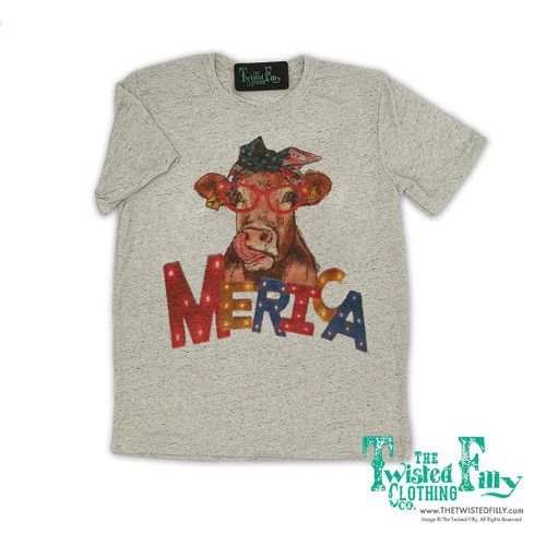The Twisted Filly® Girls' S/S Oatmeal Merica Cow T-Shirt