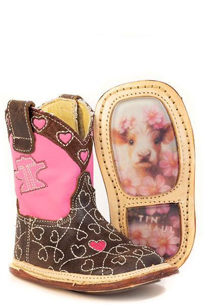 Tin Haul® Infant Brown/Pink Lil Sweetheart/Be Moo Tiful Zipper Booties