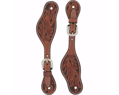 Weaver® Ladies' Floral Carved Chestnut Spur Straps