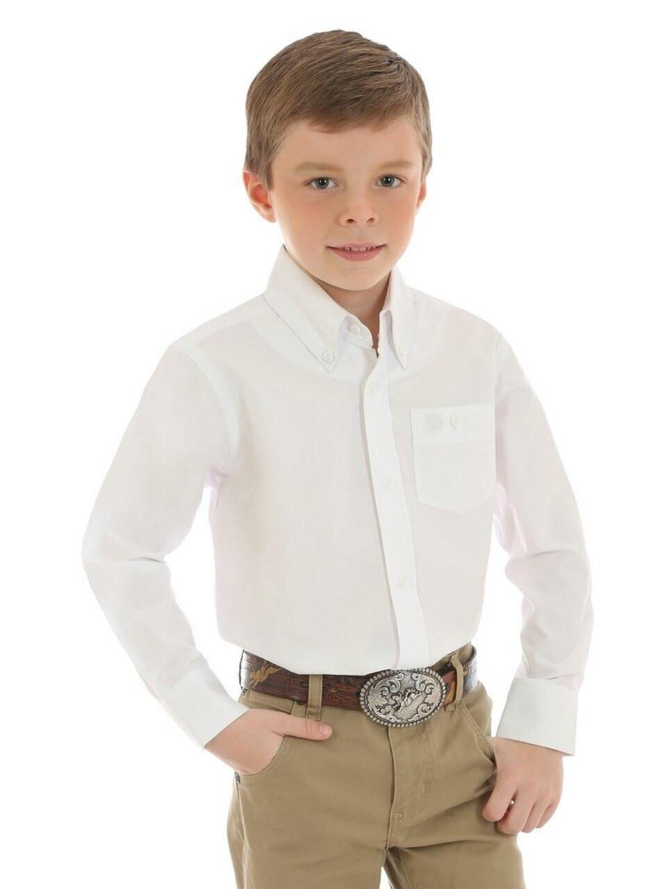 Wrangler® Boys' L/S Solid White Button Shirt