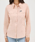Wrangler® Ladies' L/S Pink Embroidered Collar Snap Shirt