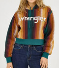 Wrangler® Ladies' Teal Serape Striped Cropped Logo Hoodie