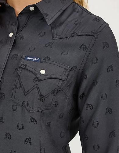SALE Wrangler Retro® Ladies' L/S Subtle Black Horses Western Snap Shirt