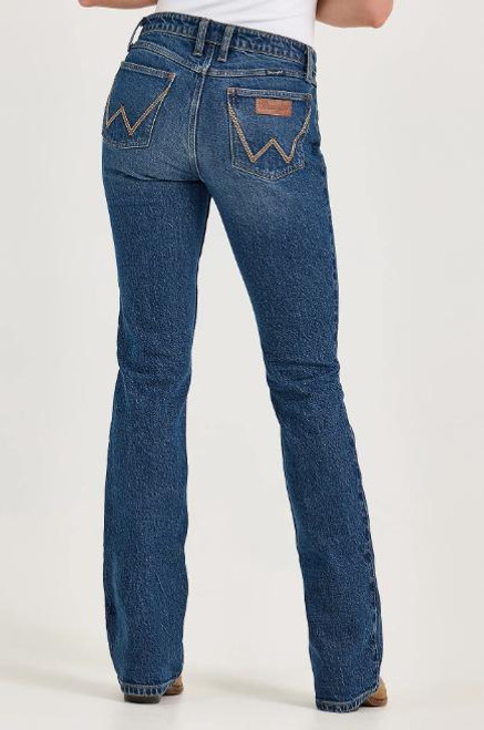 Mae places a contemporary twist on the cowgirl cool aesthetic. All Wrangler® jeans for women are designed to accentuate your best assets, but the women's Retro® jeans go above and beyond. Wrangler® Retro® jeans pay tribute to Western heritage with the iconic details you know and love, including the leather patch and authentic W stitching on the back pockets. Plus, these women's bootcut jeans come with a figure-flattering, mid-rise fit that's truly versatile.