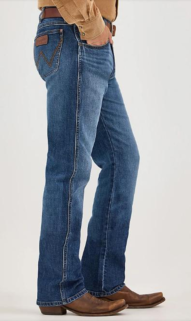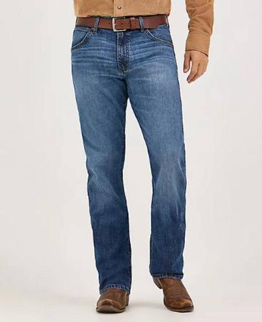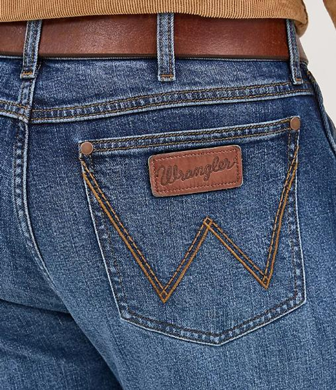 Since 1947, Wrangler® jeans have been a cowboy-approved wardrobe staple. Inspired by Western heritage, these Wrangler® Retro® jeans combine our most iconic features with contemporary fits and washes. This updated classic features the same worn leather patch with the rope logo, 'W' stitching on the back pockets, and five-pocket styling. These men's slim bootcut jeans feature a streamlined silhouette through the seat, thigh, and knee, but the leg widens from the knee downward, which is good news for boots. When it comes to finding the best bootcut jeans for men, your search ends here.