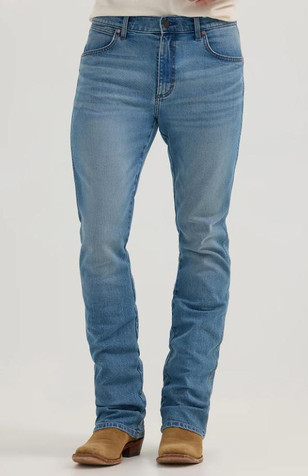 Since 1947, Wrangler® jeans have been a cowboy-approved wardrobe staple. Inspired by Western heritage, these Wrangler® Retro® jeans combine Wrangler's most iconic features with contemporary fits and washes. This updated classic features the same worn leather patch with thier rope logo, 'W' stitching on the back pockets, and five-pocket styling. These men's slim bootcut jeans feature a streamlined silhouette through the seat, thigh, and knee, but the leg widens from the knee downward, which is good news for boots.